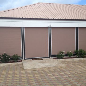 Rollscreens are popular choices for clients who want privacy plus rain and sun protection without compromising air flow.